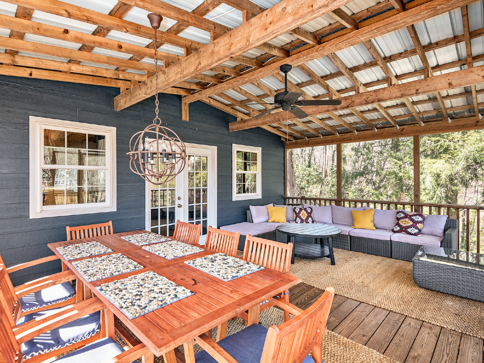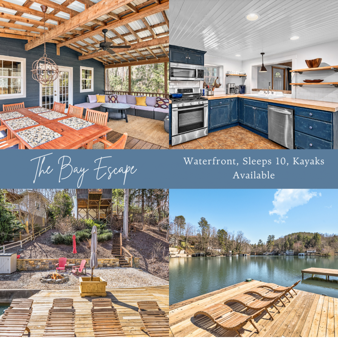 PMI Blue Ridge invites you to The Bay Escape. Step out onto the screened porch overlooking the lake and you can almost hear yourself relaxing. This four-bedroom, two-bathroom getaway is situated on Tryon Bay, a sheltered cove on the south side of Lake Lure. There is a dock, and we provide kayaks. The house is within walking distance to The Lake House restaurant (the locals still know it as Larkin's), and the Ingles Market grocery store is less than a mile away.